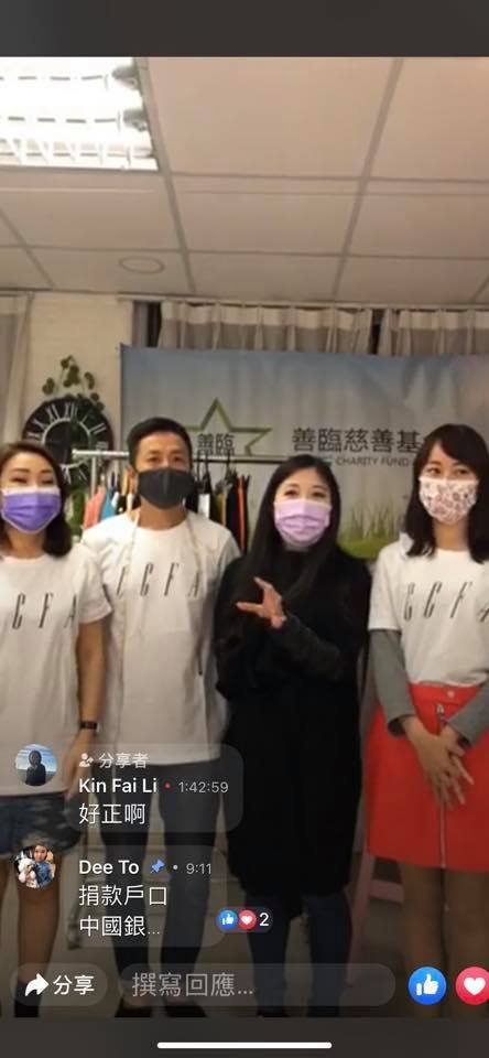 本會非常感激「國際商龍交流會-港澳屬會」的協助下,破天荒於網上直播義賣衣服為本會籌集善款,相信也是香港慈善機構的首次類型活動。感謝你們的努力,在你們眾志成城群策群力的團隊力量下,由策劃到實踐一星期內真的做到了。再一次感激你們為「善臨慈善基金會」的付出。祝貴會日益擴張,猛將如雲!